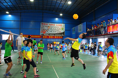 隨著主裁的一聲哨響,氣排球比賽正式開始。本次氣排球比賽以淘汰賽形式進(jìn)行,第一輪由“集團(tuán)領(lǐng)導(dǎo)” 對(duì)陣“嘉通無(wú)敵隊(duì)”、“盛景榮隊(duì)”對(duì)陣“開心聯(lián)隊(duì)”、“克懼隊(duì)”對(duì)陣“萬(wàn)方物業(yè)隊(duì)”、“勇港隊(duì)”對(duì)陣 “盛青隊(duì)”,兩方的隊(duì)員便開始了龍爭(zhēng)虎斗、各施絕技。各隊(duì)的參賽隊(duì)員都以昂揚(yáng)的斗志迎接比賽,發(fā)球、起跳、攔網(wǎng)、扣球……各隊(duì)比分在裁判員的一次次翻牌中發(fā)生變化。最后,“勇港隊(duì)”、“嘉通無(wú)敵隊(duì)”、“盛景榮隊(duì)”、“萬(wàn)方物業(yè)隊(duì)”成為4強(qiáng)隊(duì)伍,進(jìn)入半決賽。