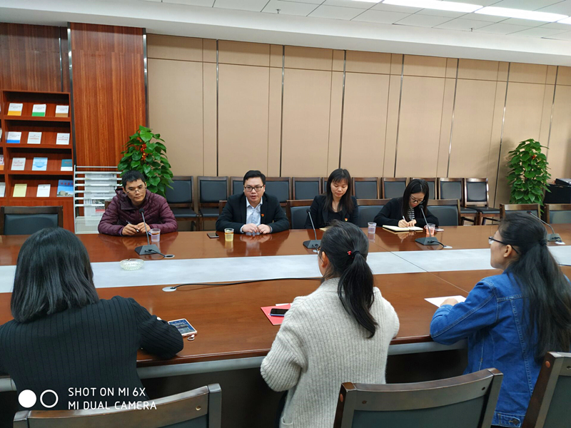 黨群工作局副局長蘇致誠認(rèn)真聽取綠港集團黨建示范點建設(shè)工作情況