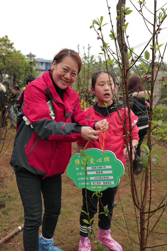 當(dāng)天,綠港集團還舉行了植樹護綠活動。在細雨紛飛中,家長和孩子們一起動手,分工協(xié)作。大家栽得認真,干得賣力,揮鍬鏟土、挖坑、栽樹、蓋土、澆水,各個環(huán)節(jié)銜接有序,配合默契。整個植樹活動現(xiàn)場熱火朝天,歡聲笑語不絕于耳。經(jīng)過一個多小時的揮汗奮戰(zhàn),上百棵小樹苗整齊的“站”在了綠港·國際中心桃樹林中。放眼望去,樹苗迎風(fēng)挺立、搖曳生姿,大家看著這一片自己親手種下的樹苗,無不露出幸福的笑容,紛紛與小樹苗合影。綠港集團下屬榮鑫公司副總經(jīng)理唐欽月表示:“植樹造林是一項利于當(dāng)代、造福子孫的偉大工程。綠港集團成立五年來,每年都積極組織員工開展義務(wù)植樹造林活動。今天我們帶上孩子一起參加義務(wù)植樹活動,不僅增強了職工們生態(tài)環(huán)境保護的責(zé)任感,也給孩子們樹立了關(guān)心、愛護以及主動參與家園建設(shè)的意識和榜樣。”